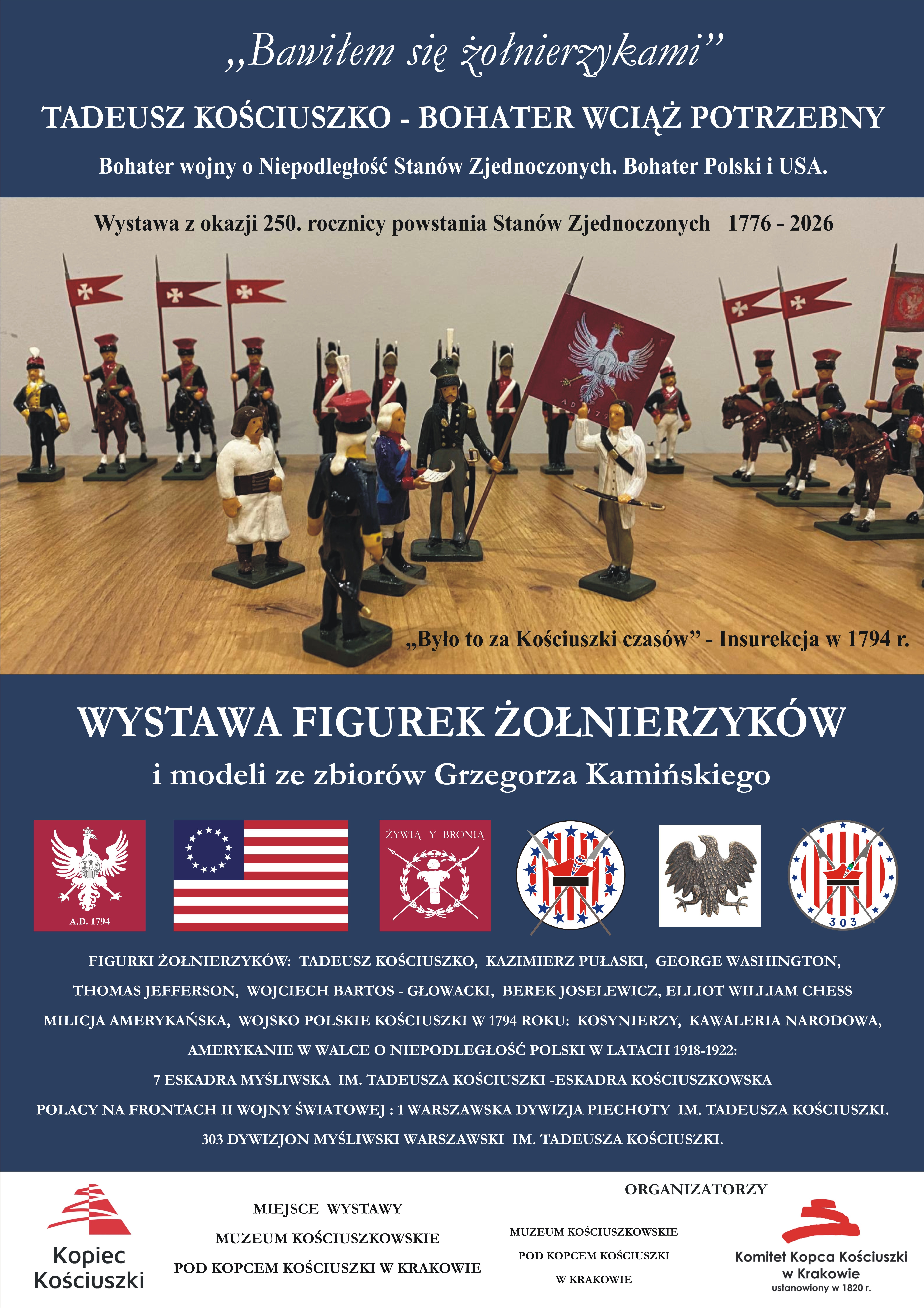 Zapraszamy na nową odsłonę wyjątkowej wystawy figurek historycznych „Bawiłem się żołnierzykami”. Ekspozycja została przygotowana z okazji 250. rocznicy powstania Stanów Zjednoczonych (1776–2026).
